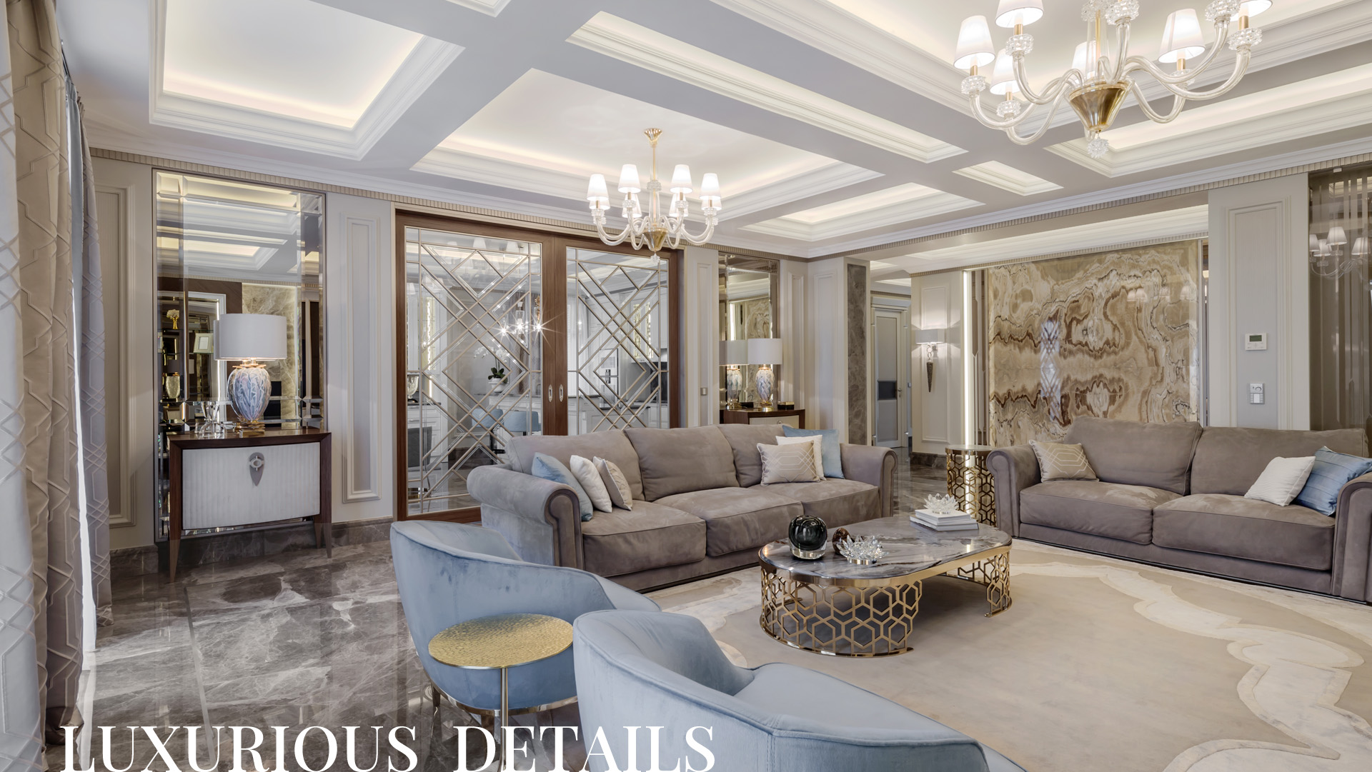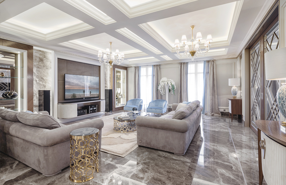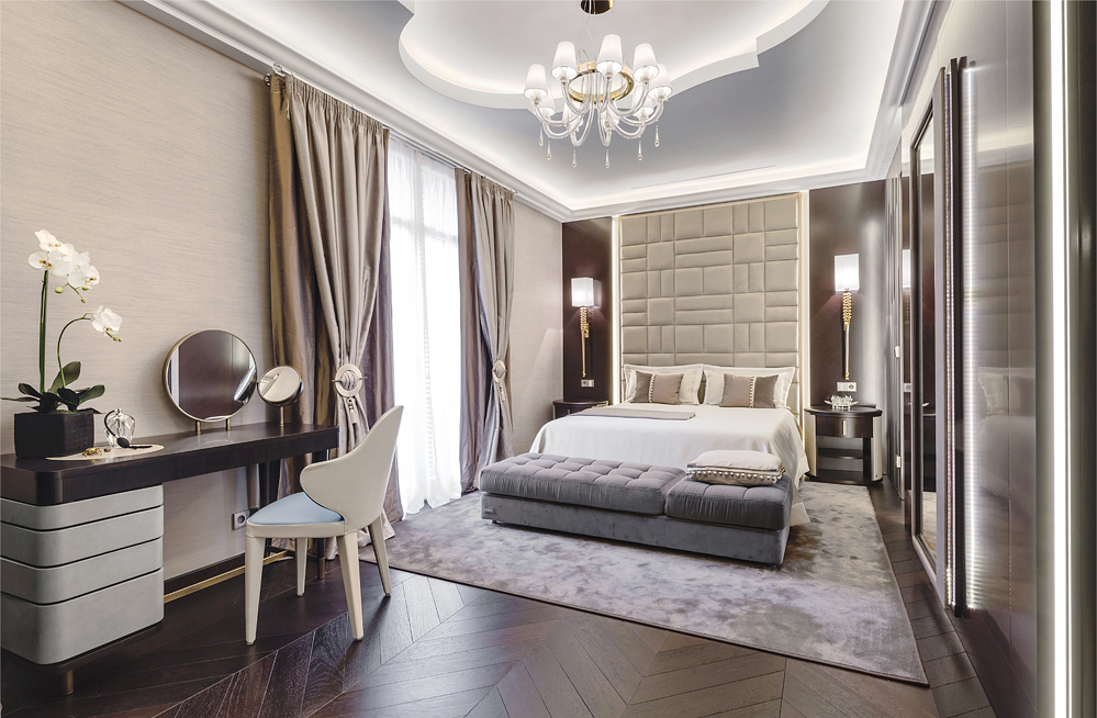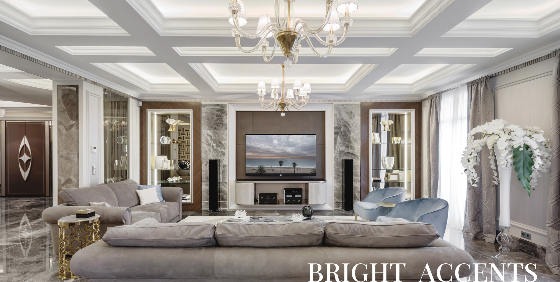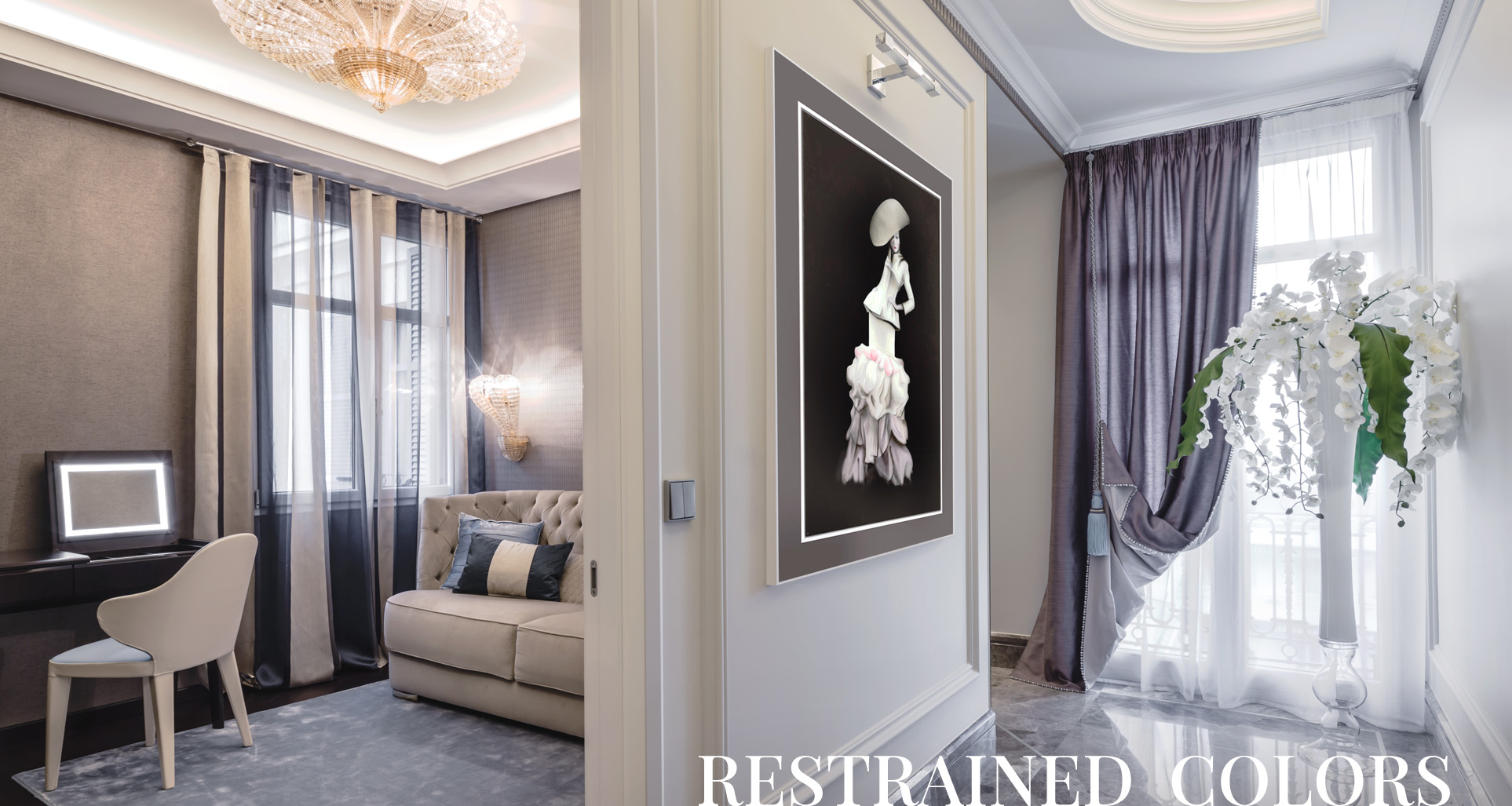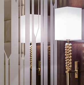 Spectacular details such as Sigma L2 wall sconces, De Majo chandelier, Houles tassels on curtains and in textile makes the interior more decorative.