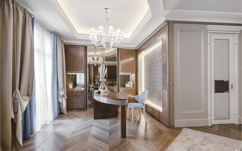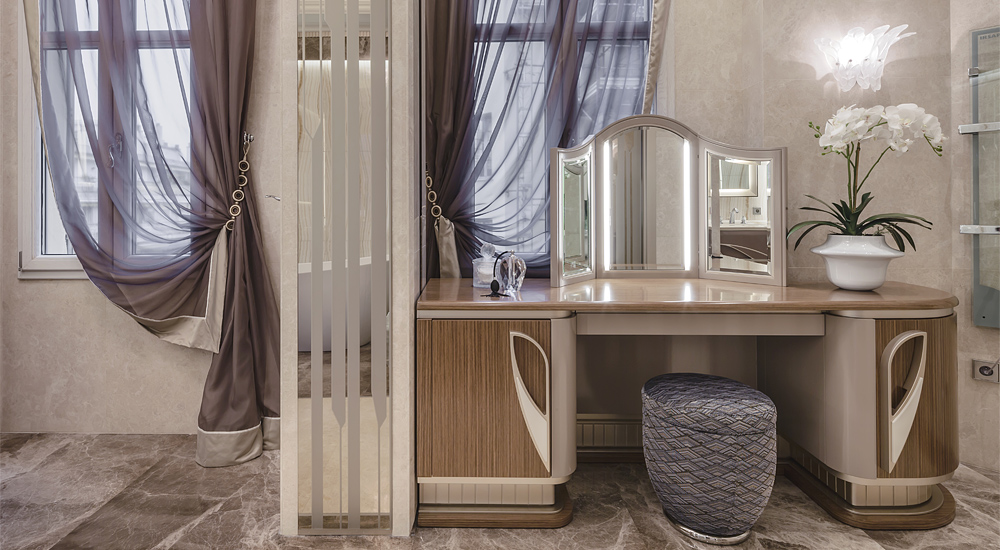 The furniture of the dressing room is designed to be prestigious without compromising its own functionality and provides a convenient storage space.