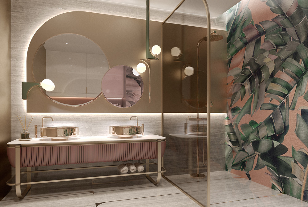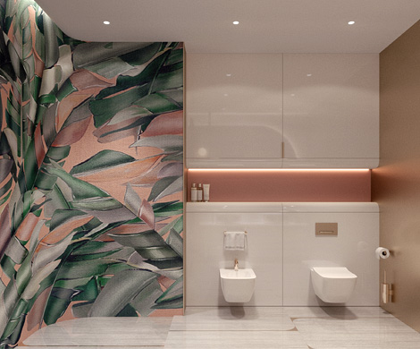 Some modern materials can also be used in “wet areas”, such as vinyl wallcoverings from Wall & Deco, which opens up new approaches for a bathroom interior design.Specially designed author's furniture end elements, not only support meet the stylistic decision, but also functionally "equip" the room.