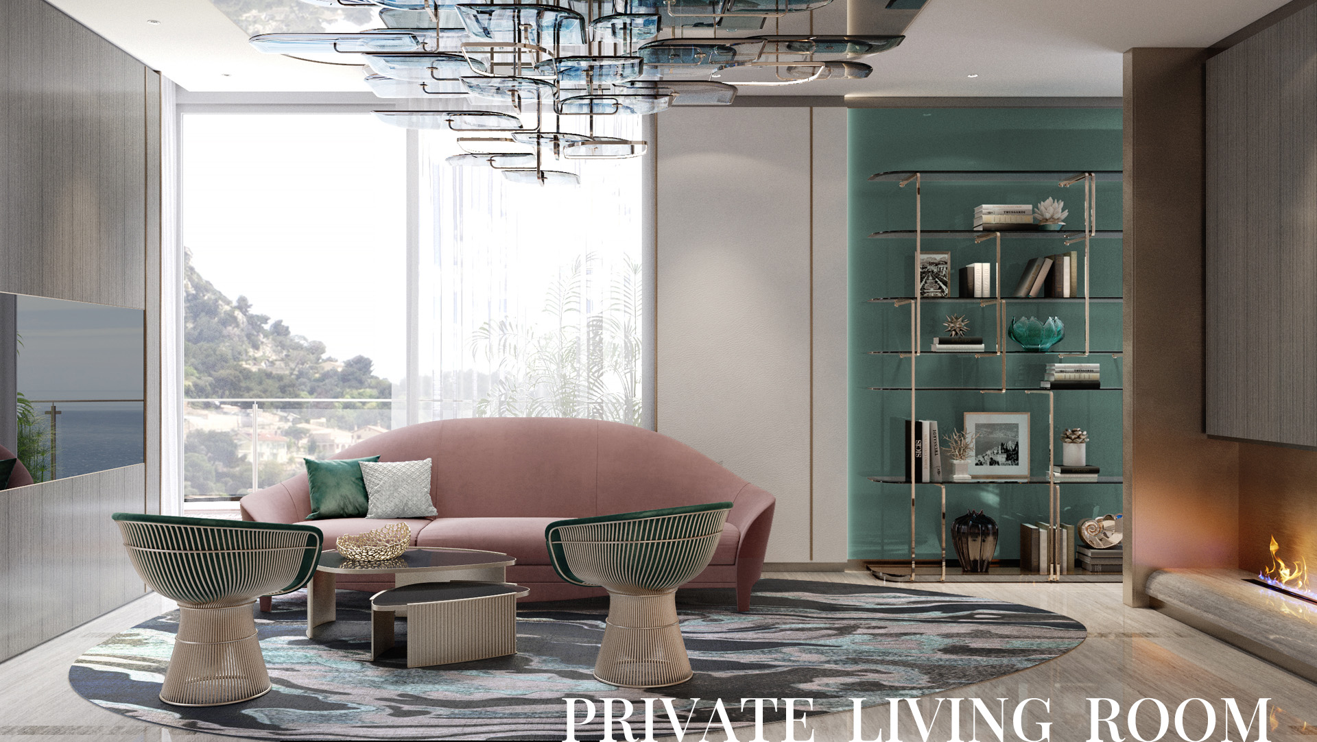The interior of the private guest wing is designed in favor of eclecticism on the blend of contemporary, art deco and with design elements of the 60s. More modern approach in the interpretation of its design allows to create a visually active interior in small volumes.