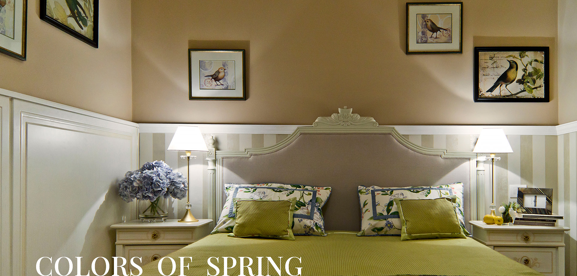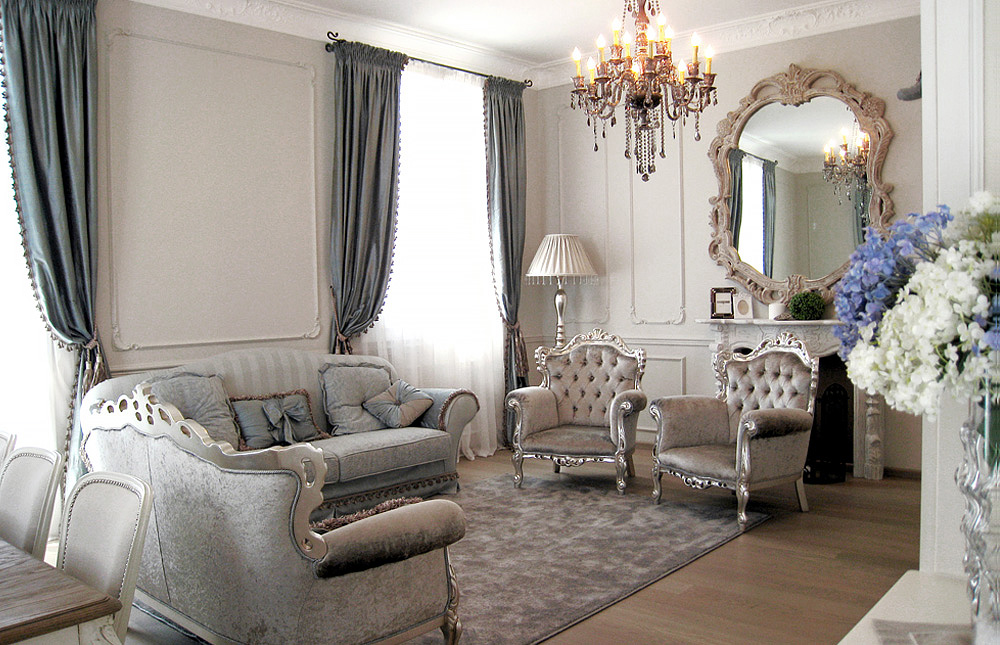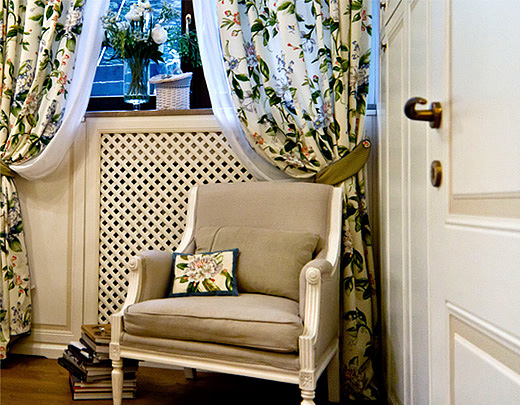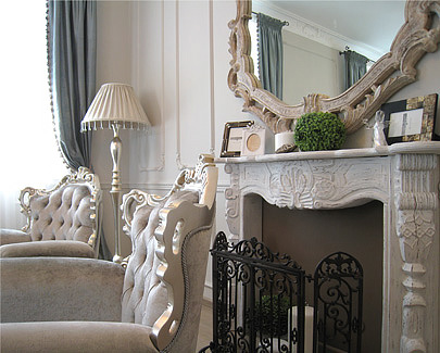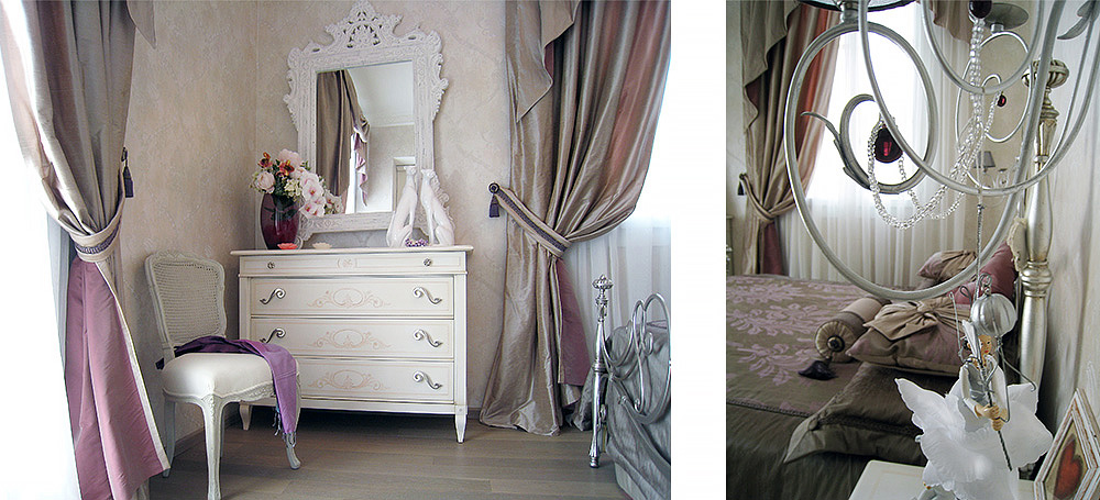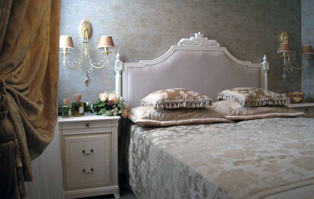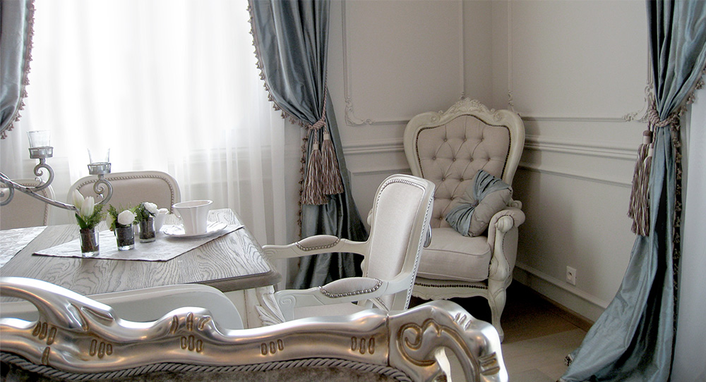 The furniture in a traditional finish of two colors of lacquer applied by hand. Inserts and upholstery from harmoniously selected textiles, together with the general restrained warm color palette - create the basis for the interior of this style.