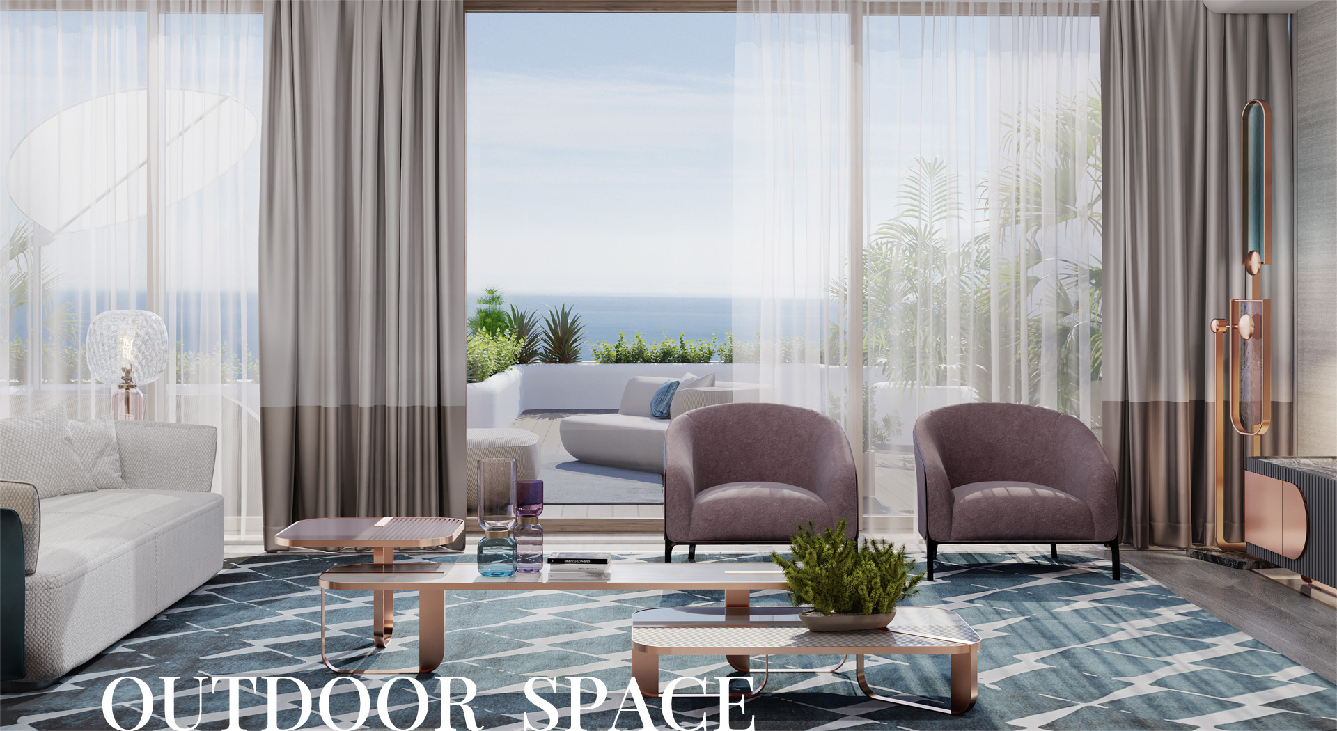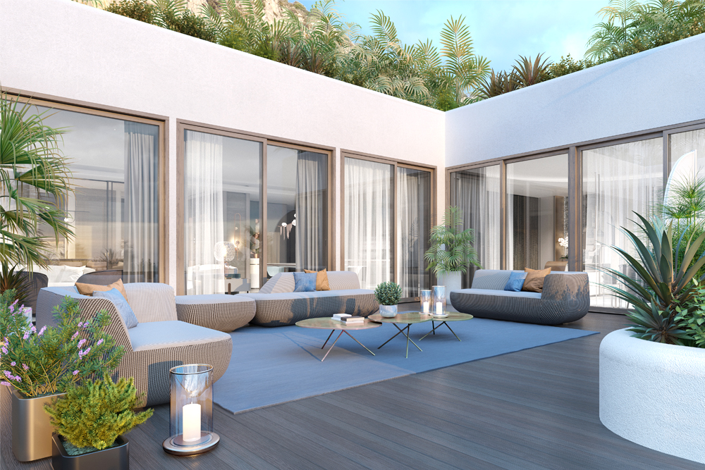 A private terrace is an essential continuation of the interior, creating an additional separate area for outdoor recreation.