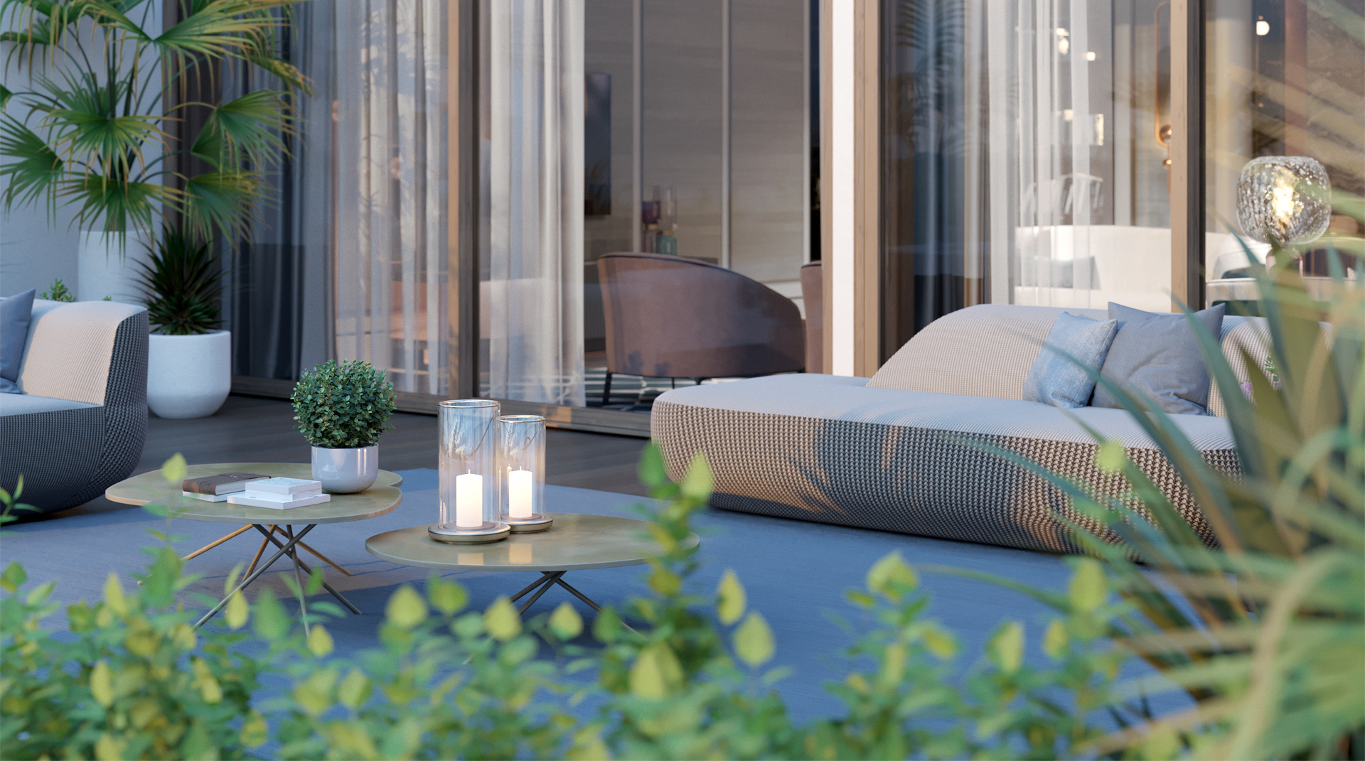 The refined design and use of modular furniture allow to create a dynamic layout of the terrace.